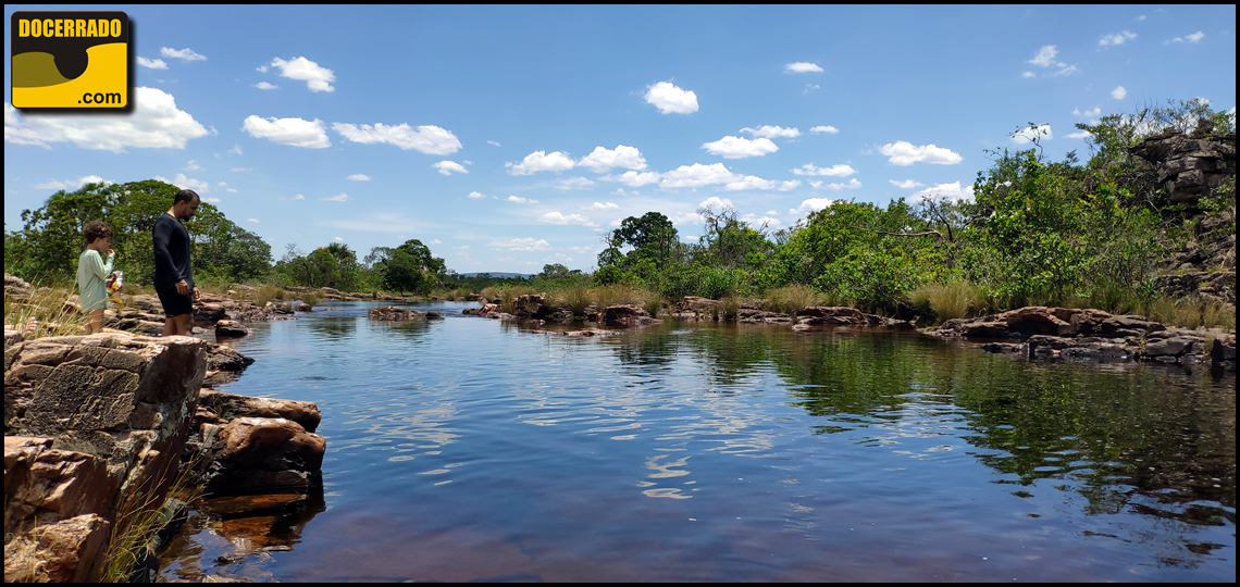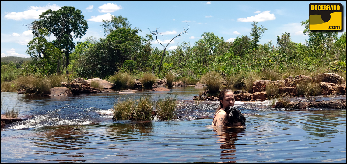Aproveitamos por bastante tempo a área da cachoeira e marcamos um tempão em uma praia onde a Kira pode curtir pela primeira vez a Chapada dos Veadeiros.
