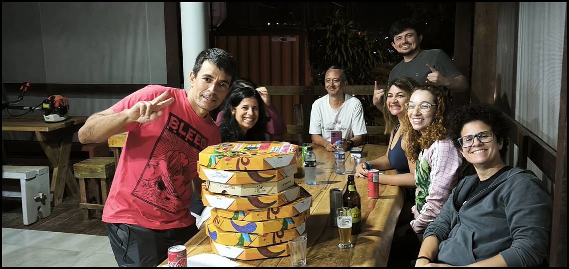 A noite a galera fez a noite estilo tartaruga ninja, várias pizzas foram devoradas em questão de minutos e o sono chegou cedinho, fazendo todo mundo ir deitar cansados, porém de alma lavada.