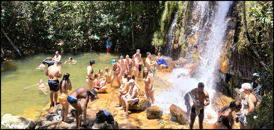 Depois quando entra na estrada de terra é só descida, solta o freio e atenção com as valas e os areiões. Chegamos na Cristais e o grupo se espalhou, uns foram até a última cachoeira, outras ficaram por ali mesmo perto do bar/restaurante, curtindo um sonzinho e saboreando um rango.