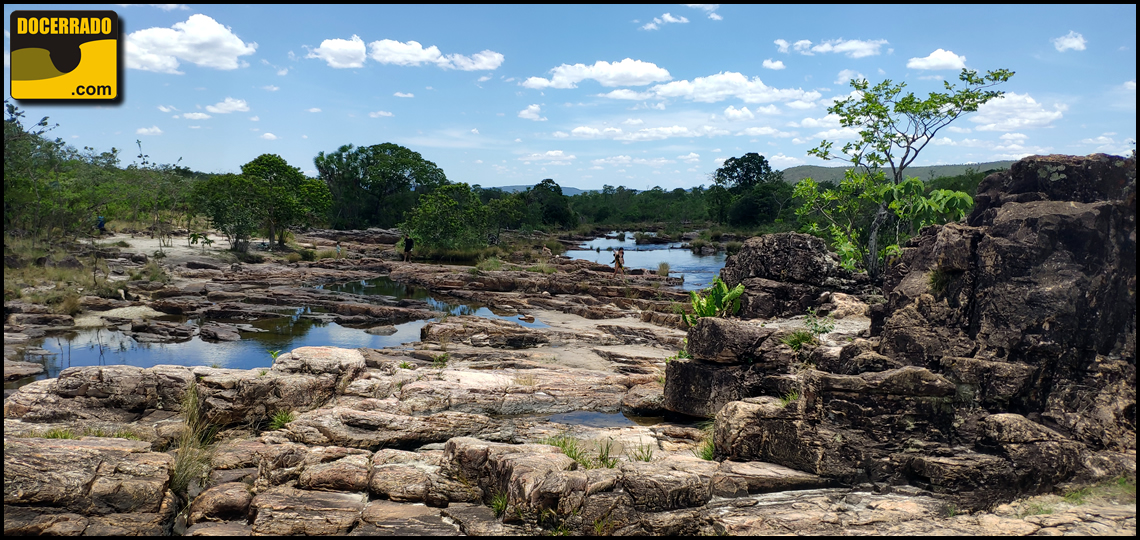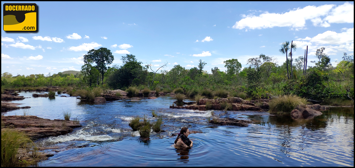 Aproveitamos por bastante tempo a área da cachoeira e marcamos um tempão em uma praia onde a Kira pode curtir pela primeira vez a Chapada dos Veadeiros.